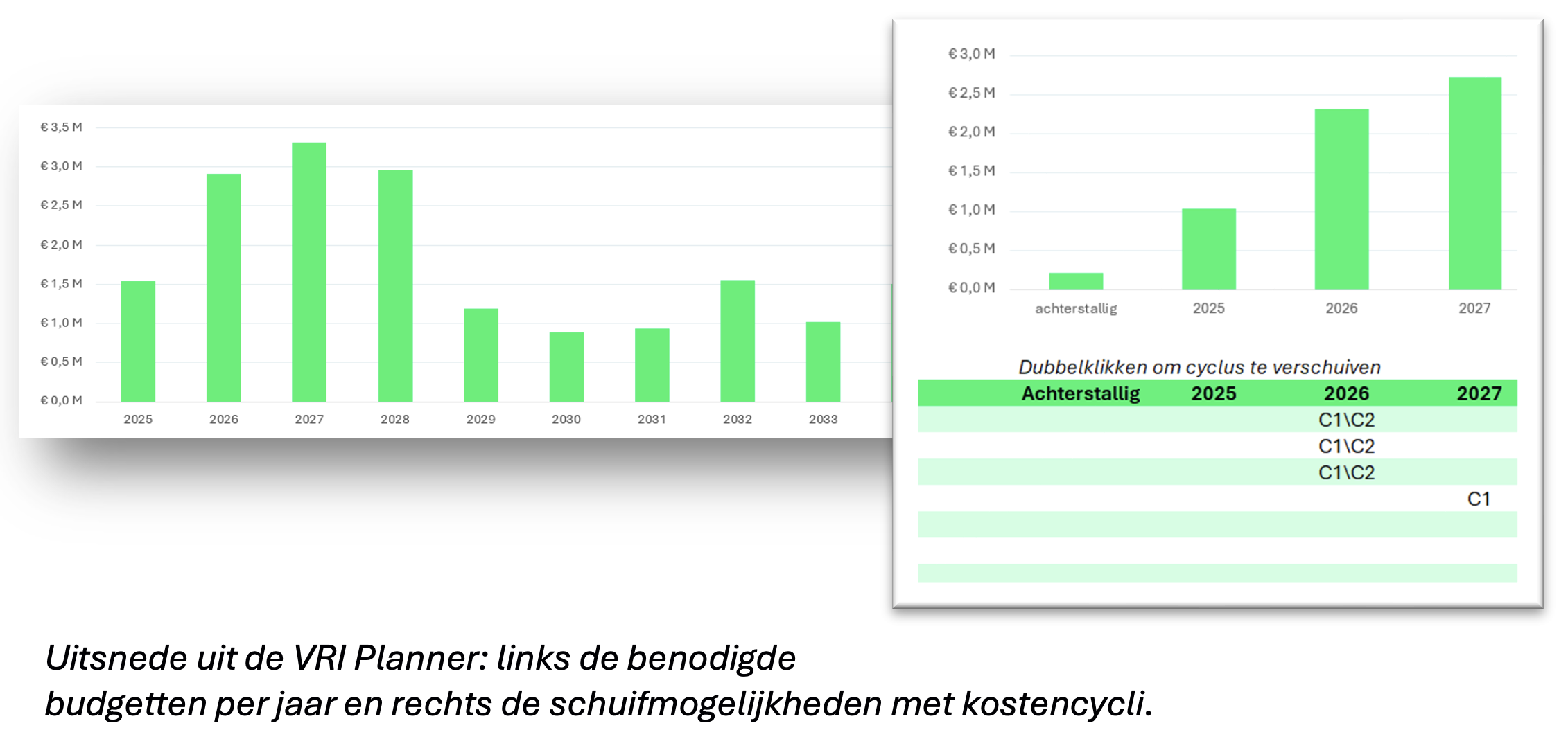 De VRI Planner biedt een praktische oplossing. Deze nieuwe Exceltool legt per VRI de aanlegjaren van de verschillende componenten vast en combineert die met kengetallen voor vervangings- en onderhoudskosten. Op een gebruiksvriendelijke manier kun je zelf snel aanpassingen uitvoeren. Zo ontstaat een transparant overzicht van de benodigde jaarbudgetten voor onderhoud en vervanging. Je kunt daarbij zelf kiezen voor hoeveel jaar je vooruit wil kijken.
