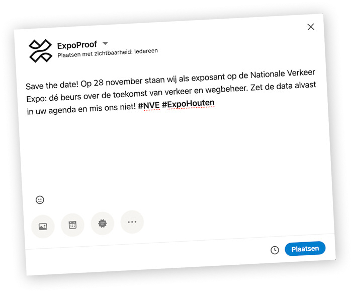 De beurs is een ideaal haakje voor je contentkalender. Nodig mensen uit, kondig productlanceringen aan, plan beursacties of vertel mensen over jullie voorbereidingen.