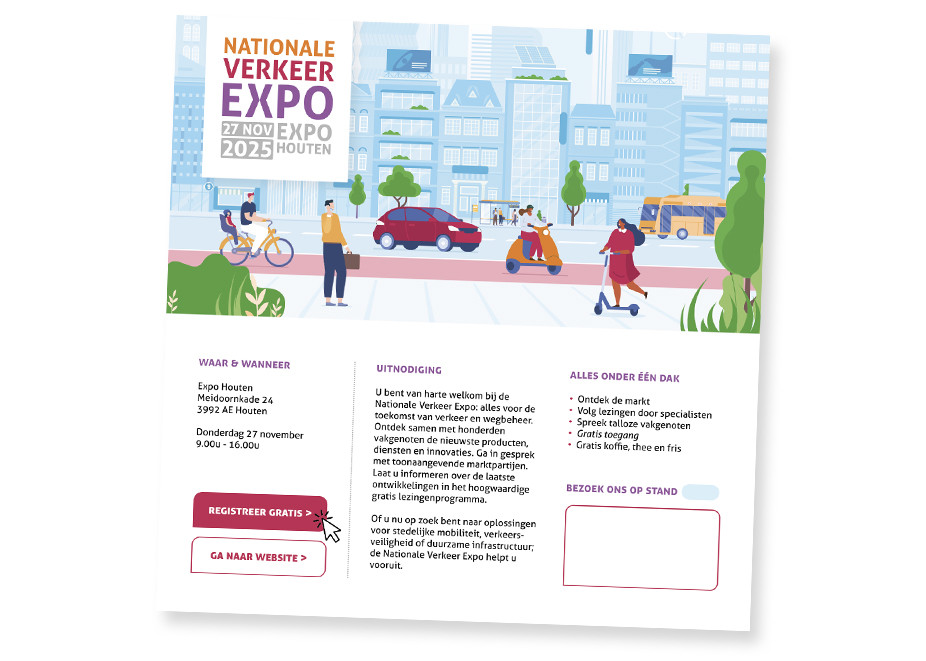 Slapend bezoekers uitnodigen? Plaats dan de beursbanners op jullie website, deel ze via jullie social media kanalen en zet ze in jullie e-mail handtekening. Zo weten geïnteresseerden meteen waar en wanneer ze jullie kunnen bezoeken. Vergeet niet om een linkje naar de beurswebsite toe te voegen!