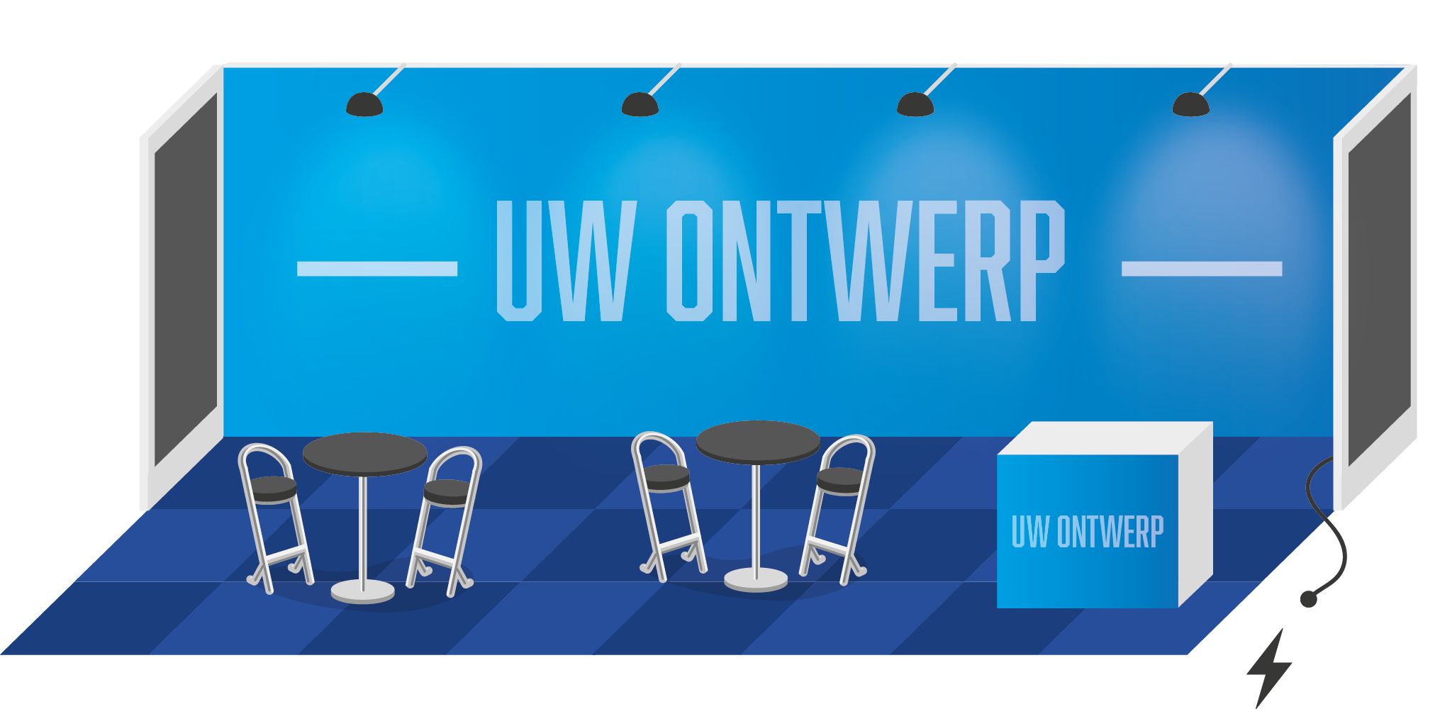 Maak het jezelf nog makkelijker door een kant-en-klare stand te kiezen. Wij kleden je stand voor je aan met visuals in jouw huisstijl en meubels. Het scheelt je tijd, het is voordelig én het ziet er strak uit.