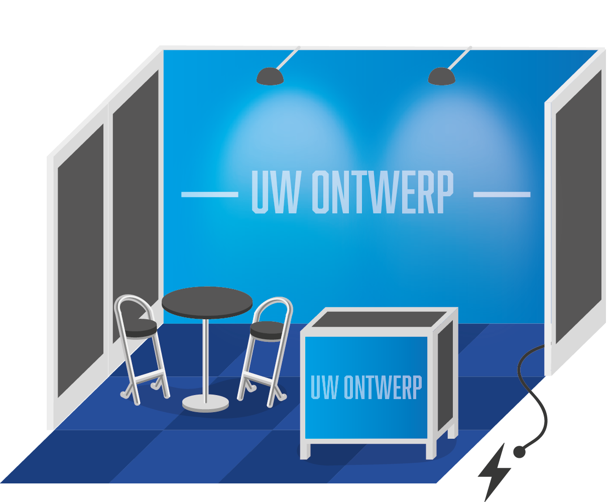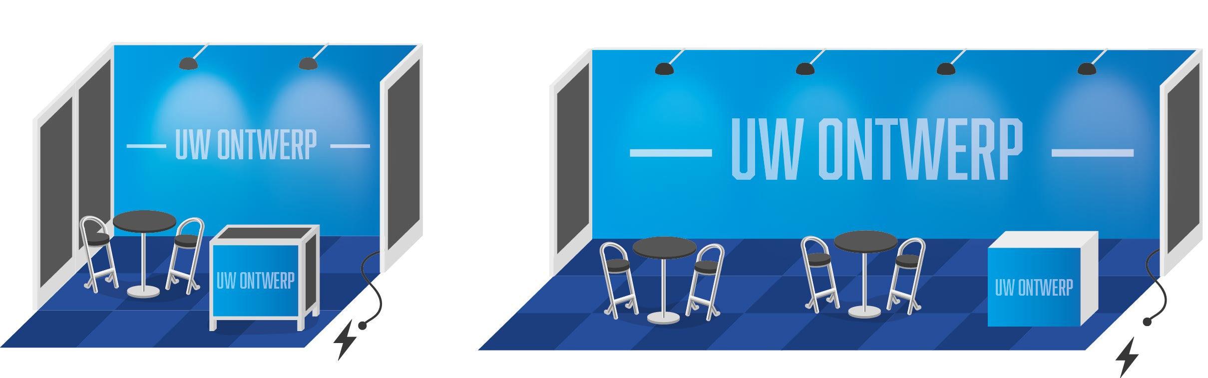 Een basis stand bevat alle essentials. Deze kun je aanvullen met eigen materiaal, banners, visuals,